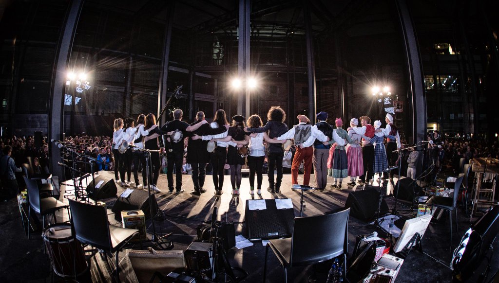 Concert offered on April 2, 2015 by Kepa Junkera in the Alhóndiga Bilbao to go over his 35 year career. Along with Junkera involved tambourine group Sorginak, the alboka-player Ibon Koteron, violinist Ara Malikian and dance group Beti Jai Alai.